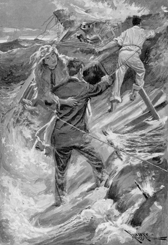 “Grasping her firmly, I lifted her off her feet, and went staggering to the life rope.”