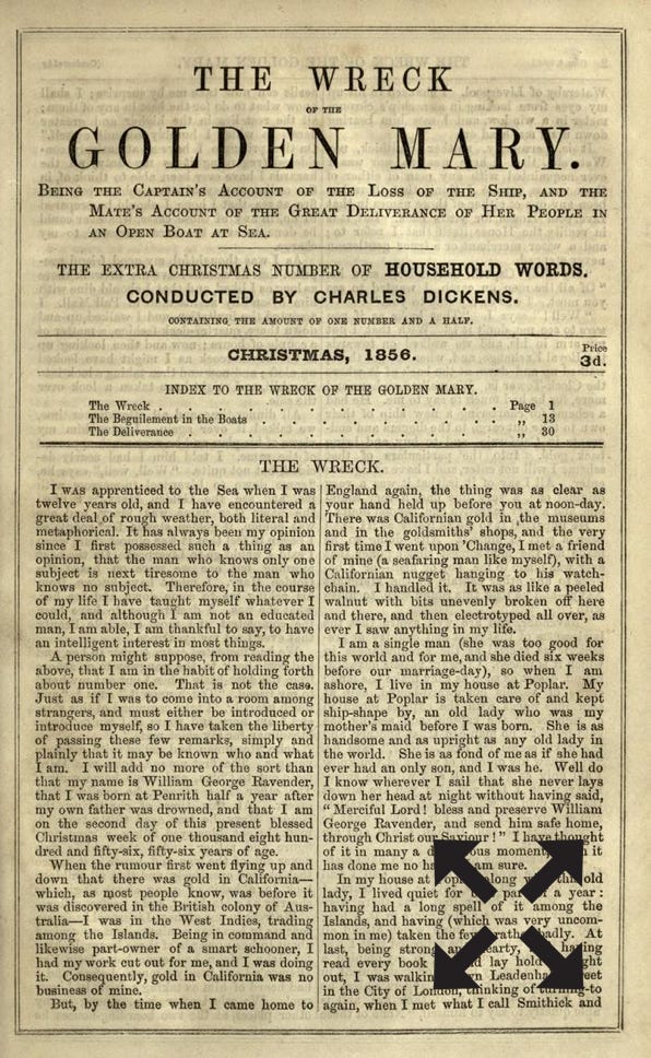 The Wreck of the "Golden Mary" was first published in the Christmas issue of Household Words in 1856.