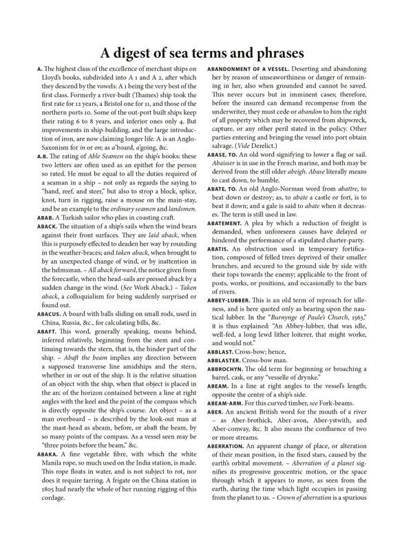 First published in 1867, this comprehensive list of nautical terms defines a huge range of common and rare words relating to the author’s extensive experience of the sea at a time when ships were moving from sail to steam.